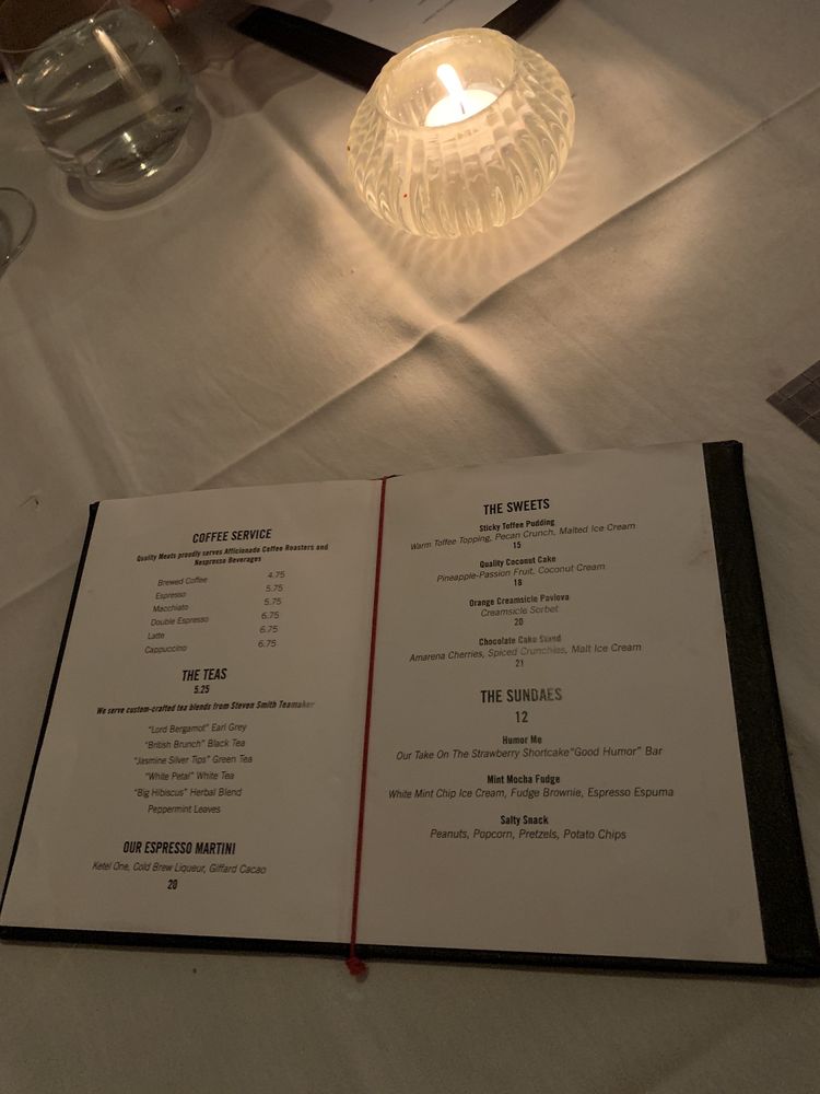 Quality Meats in New York City offers a classy dining experience with a focus on steaks and New American cuisine. The restaurant provides a range of options including keto and pescatarian dishes, but limited vegetarian choices are available. Despite not being wheelchair accessible, it offers delivery services and accepts various payment methods, including cryptocurrency. The intimate ambiance and attentive service create a welcoming atmosphere. The standout dishes include the Tomahawk steak and the corn casserole, which are highly recommended by customers. While some reviewers mentioned small shortcomings in certain appetizers, the overall quality of the steaks and sides received high praise. Quality Meats is a top choice for those seeking a memorable steakhouse experience in the city.